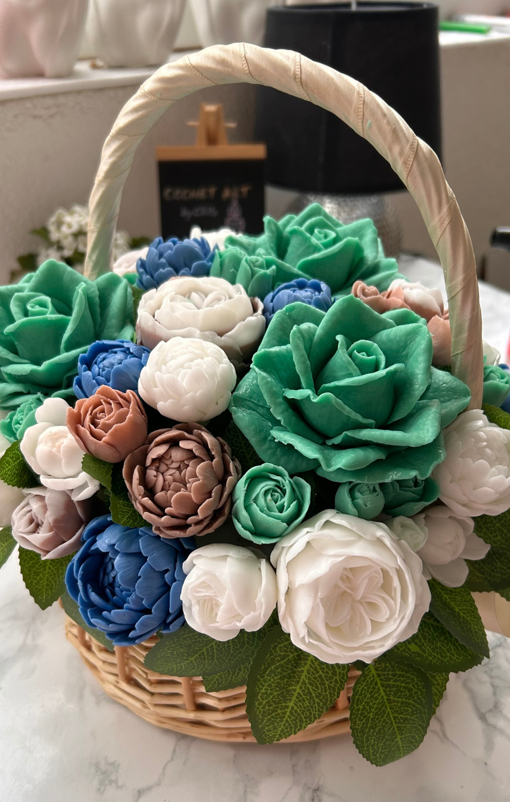 Acest cos nu este doar o adunare de flori din sapun, este o poveste spusa in culori, forme si emotii.