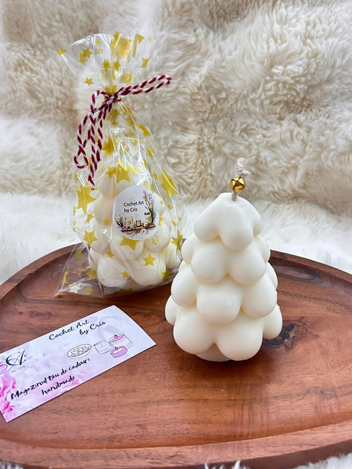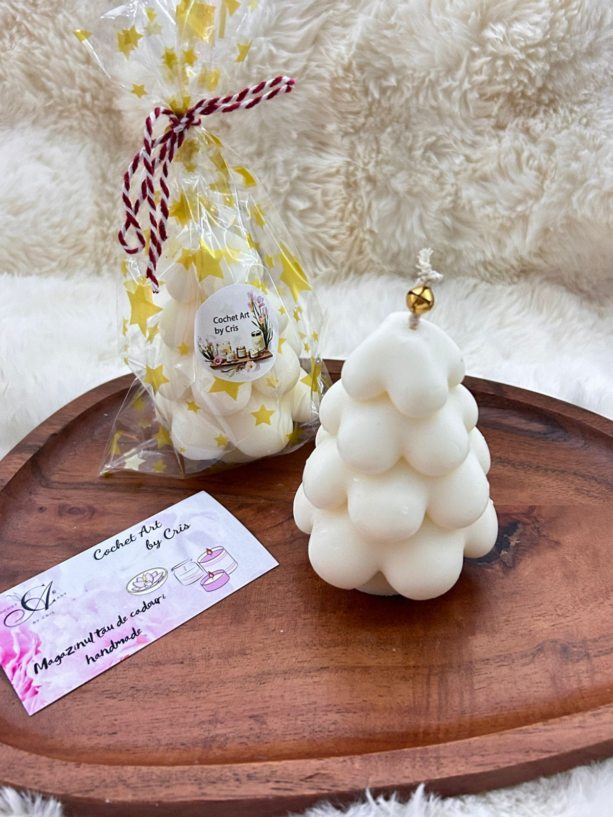 Lumanare bradut din ceara naturala de soia cu fitil din bumbac ce arde fara a degaja fum sau substante daunatoare oamenilor si mediului inconjurator.
