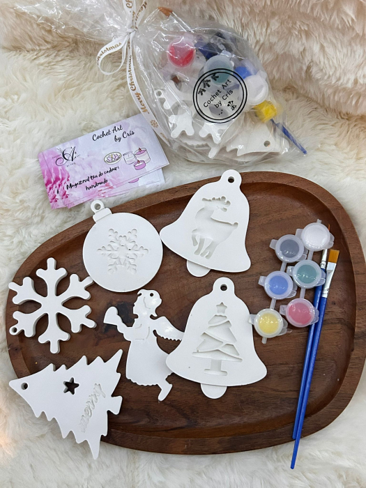 Transforma serile de iarna in momente pline de culoare, relaxare si creativitate! Acest set pentru pictat, realizat manual din praf ceramic de calitate, este ideal pentru copii, parinti, bunici sau pentru activitati creative in gradinite, scoli, ateliere si acasa.