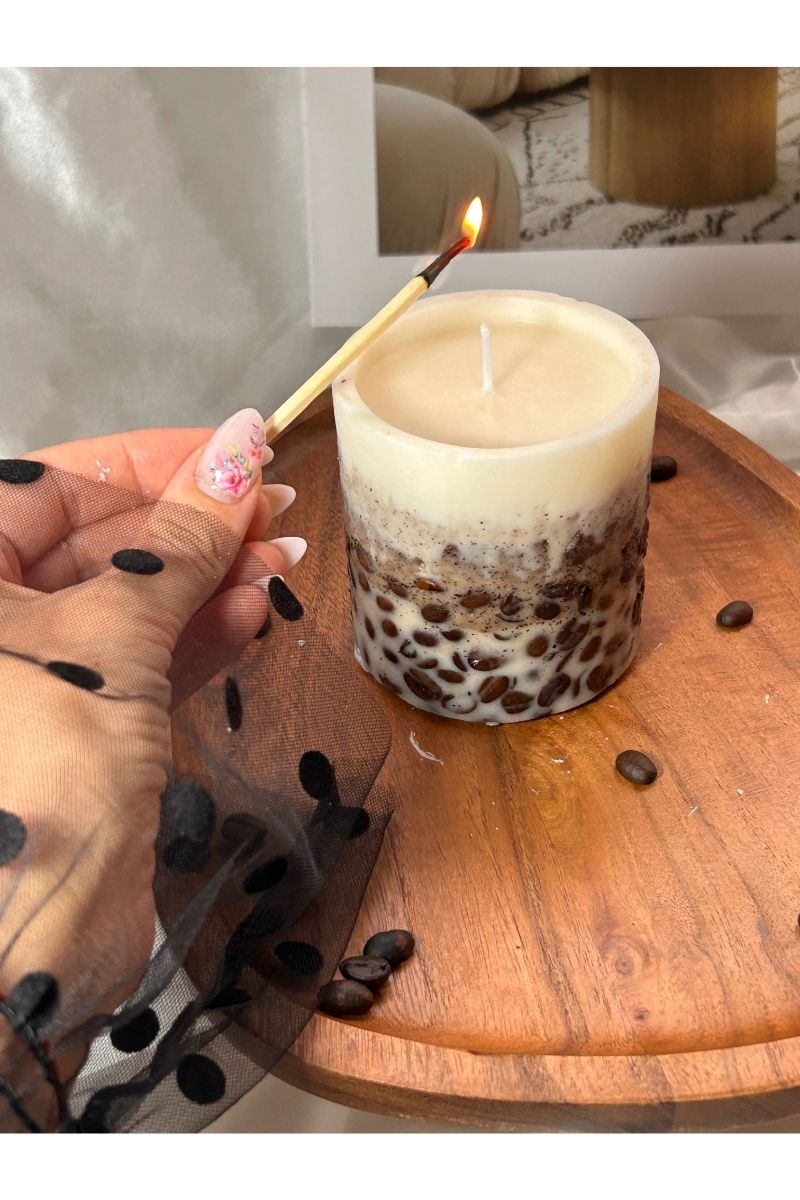 Lumanare din ceara naturala de soia in combinatie cu cafea si boabe de cafea si cu un miros demential tot de cafea.