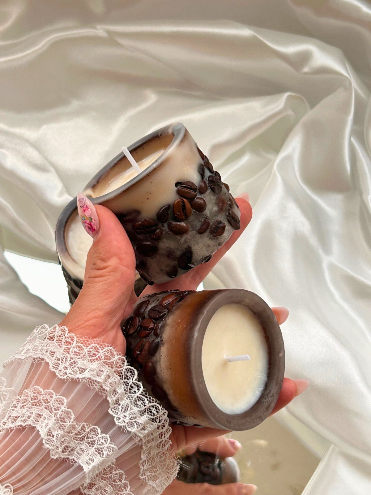 Lumanare din ceara naturala de soia in combinatie cu cafea si boabe de cafea si cu un miros demential tot de cafea.