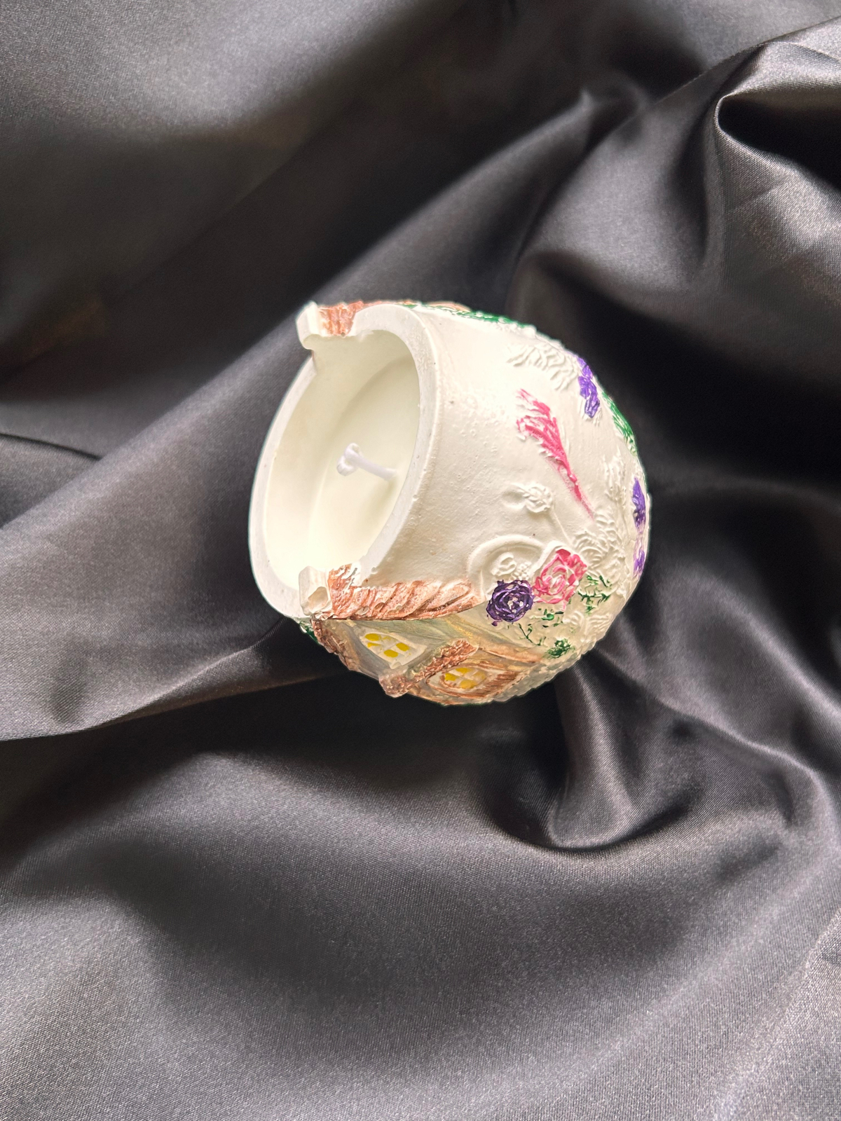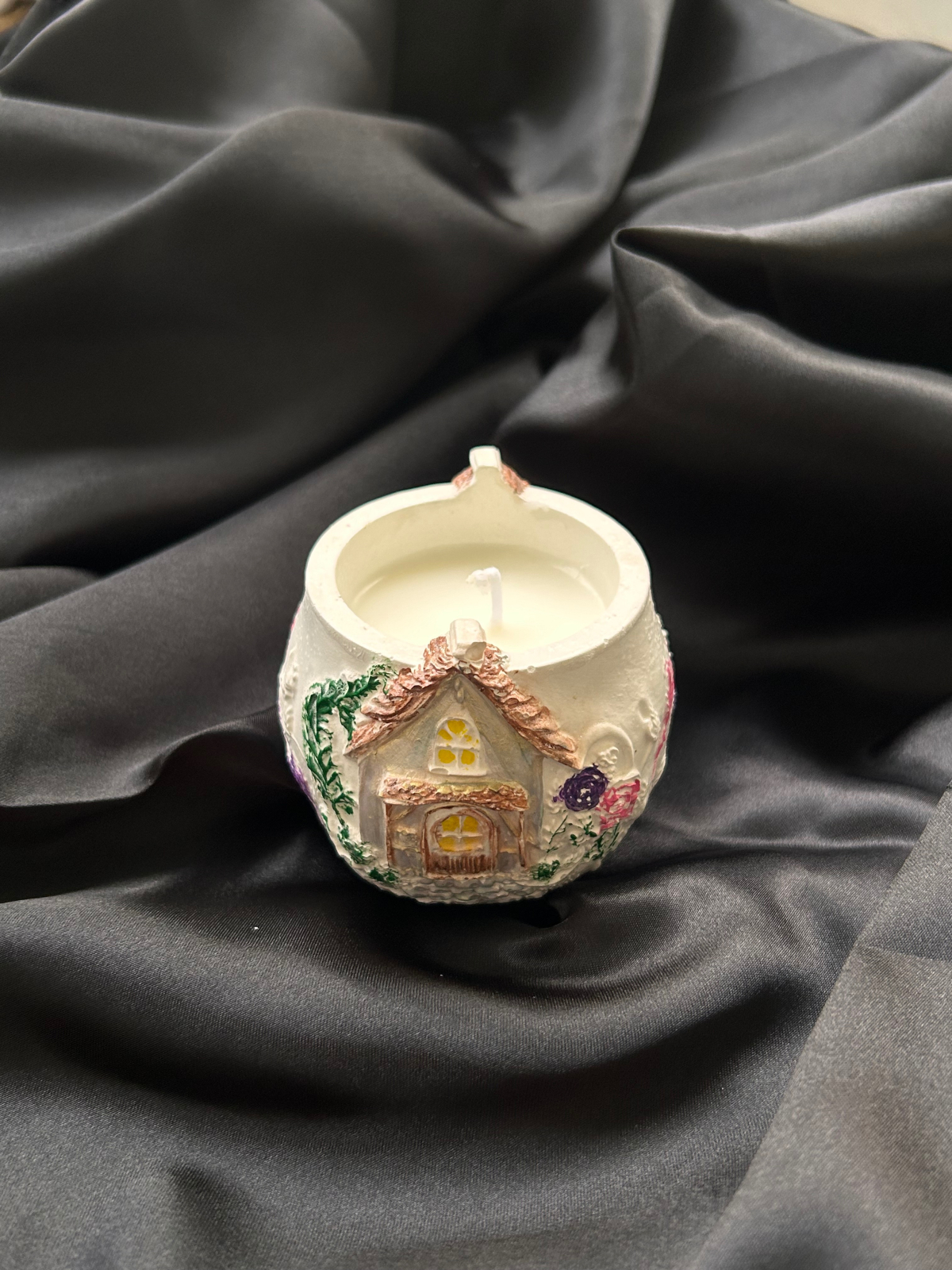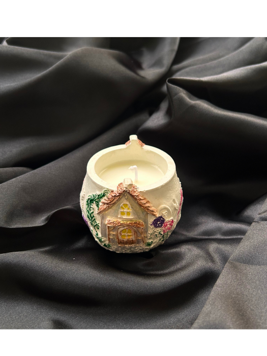 Lumanare artizanala turnata manual din ceara naturala de soia, asezata intr-un recipient ceramic pictat manual, ce reda o casuta de basm. Fiecare detaliu transmite caldura, liniste si farmecul povestilor de altadata. Perfecta pentru a crea o atmosfera placuta si relaxanta in casa sau pentru a fi oferita in dar unei persoane dragi.