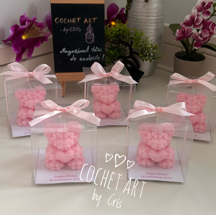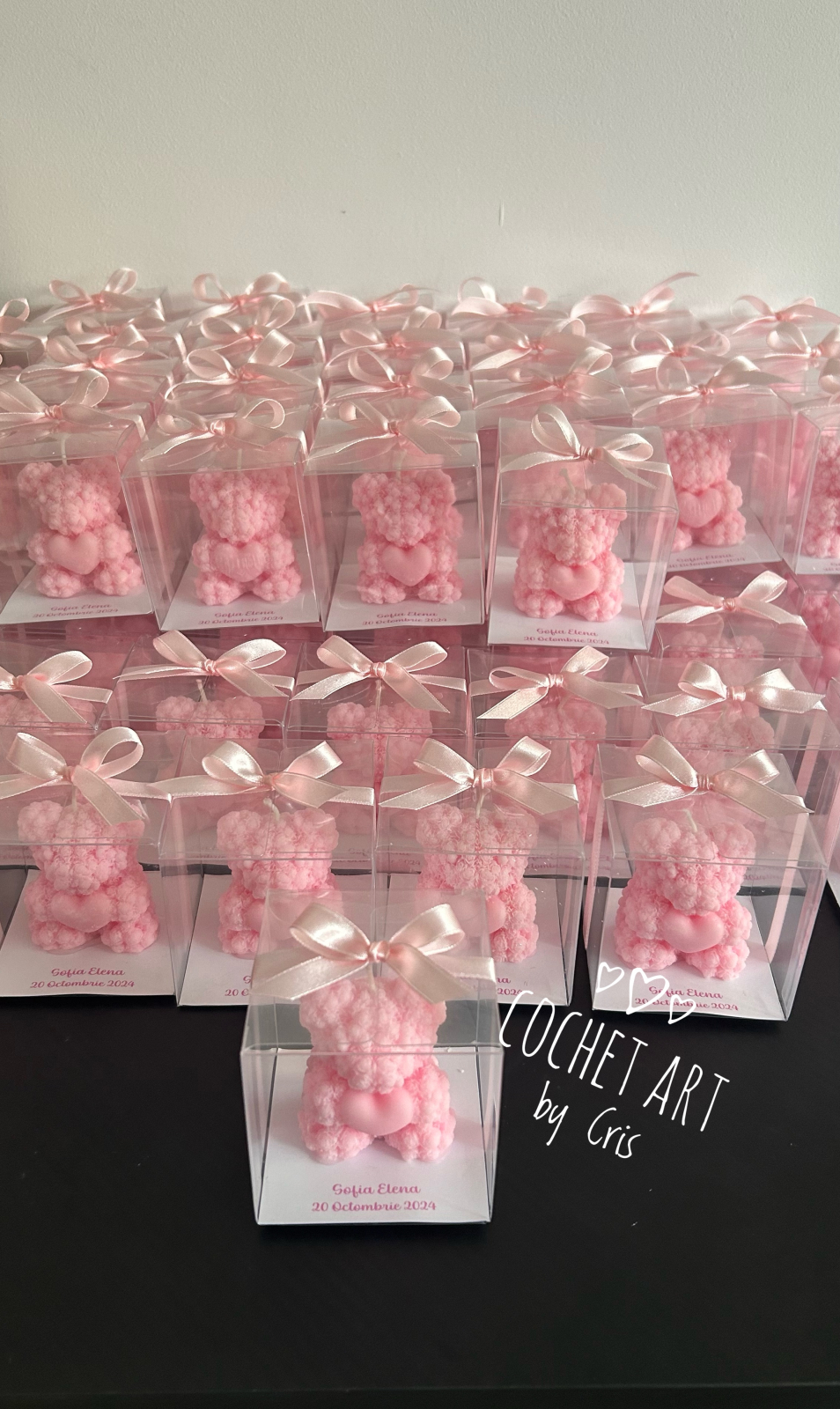 Delicate si pline de semnificatie, ele pot fi oferite invitatilor ca semn de recunostinta si afectiune, pastrand vie frumusetea momentului special. Fie ca alegi sa marchezi o poveste de iubire sau inceputul pur al unei vieti, ursuletul cu inimioară este marturia perfecta.