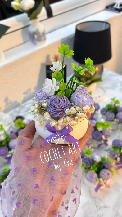 Datorită aspectului său deosebit, acest aranjament este potrivit atât pentru a decora casa sau biroul, cât și pentru a fi oferit cadou celor dragi sau chiar invitatilor de la evenimentul tau special: nunta, botez, petrecere aniversara.